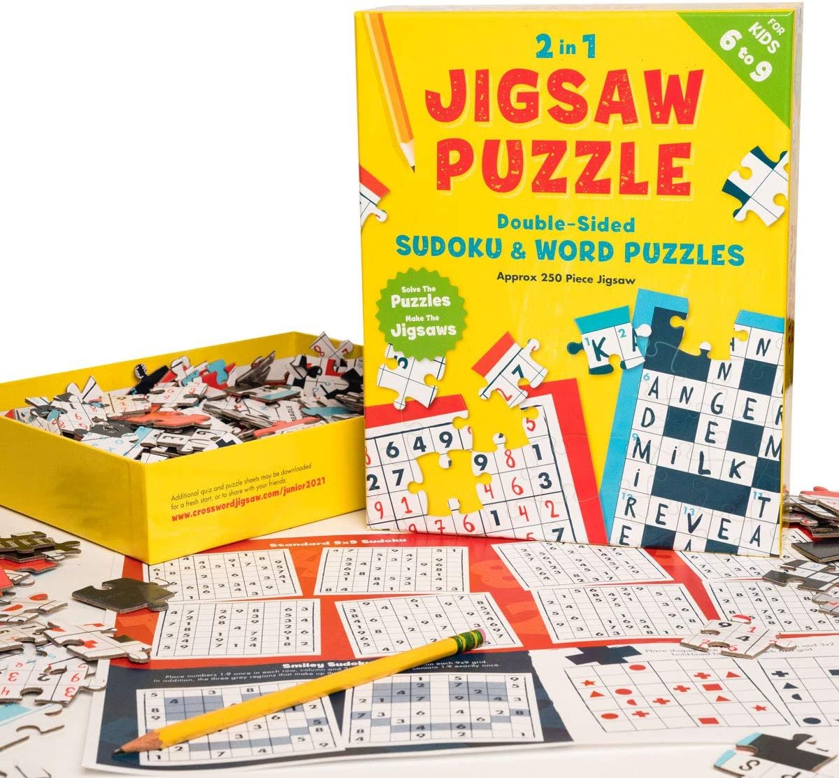 DUAL CHALLENGE: Double Sided Sudoku & Word Puzzles for Juniors and Kids. Perfect STEM building toy game for the kids!
