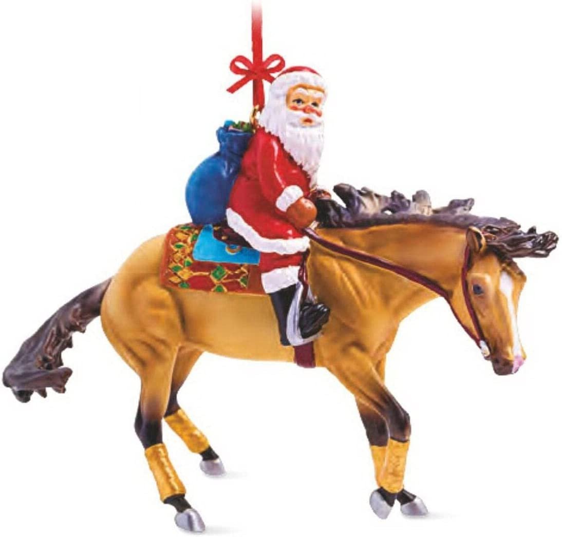 Product specifications: package contains (1) Breyer Santa Ornament - Santa Reiner. Measures approximately 5" L x 4" H. Breyer stunning sculpture celebrates the legend and brings another artistic portrayal to life.