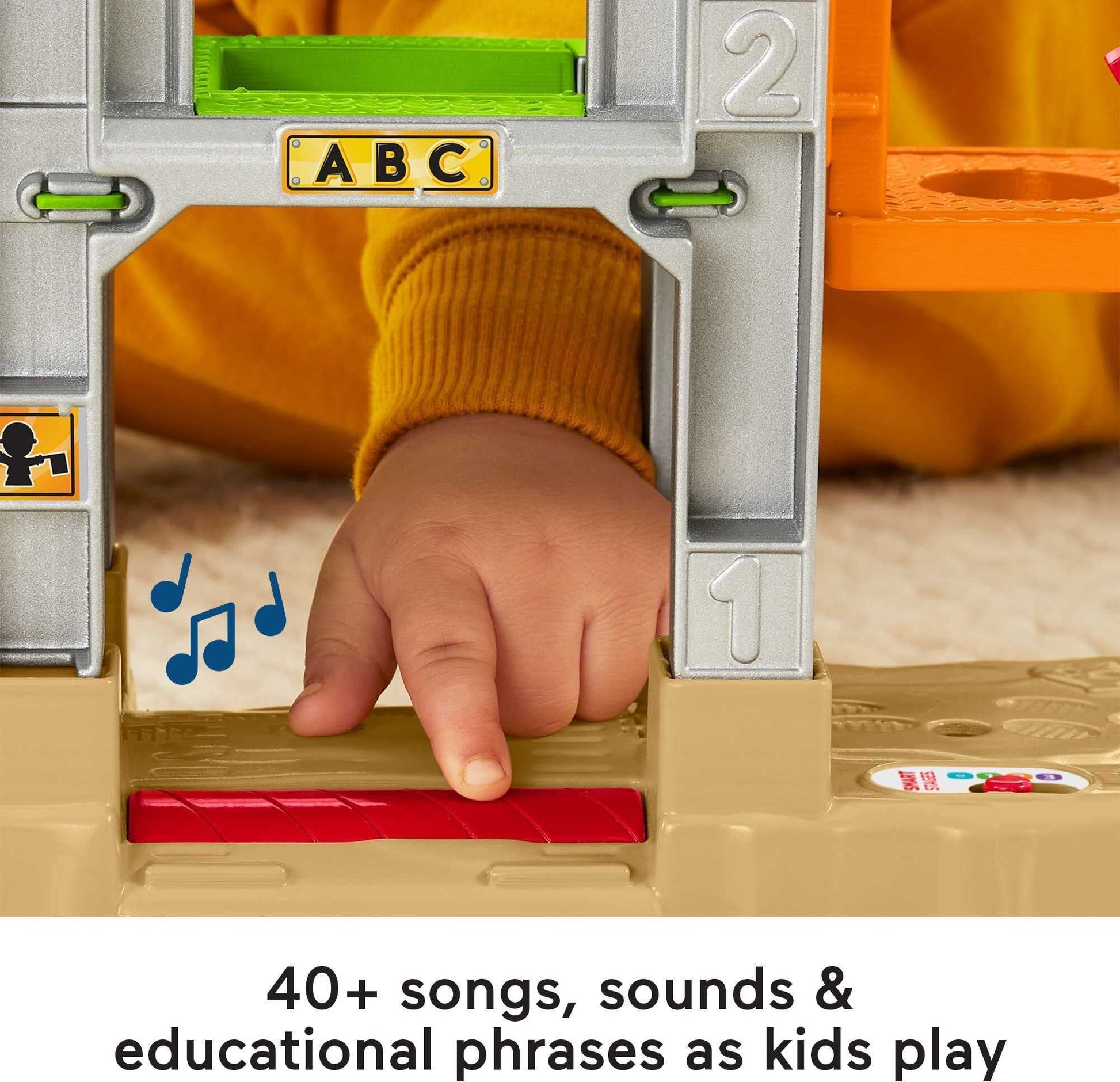 Move the elevator up & down or roll the truck over the speed bump for fun songs, sounds and phrases