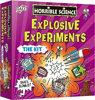 Extremely explosive stuff! Create and launch a cool rocket, watch a VOLCANO erupt, make a lava lamp and mix up some seriously slimy snot. Contents: plastic rocket, nose cone, fins, plastic VOLCANO, sand, goggles, sodium hydrogen carbonate, slime powder, glue, green and red food coloring, tub with lid, rubber stopper, valve, 2 mixing pots, 32-page top secret lab notebook.