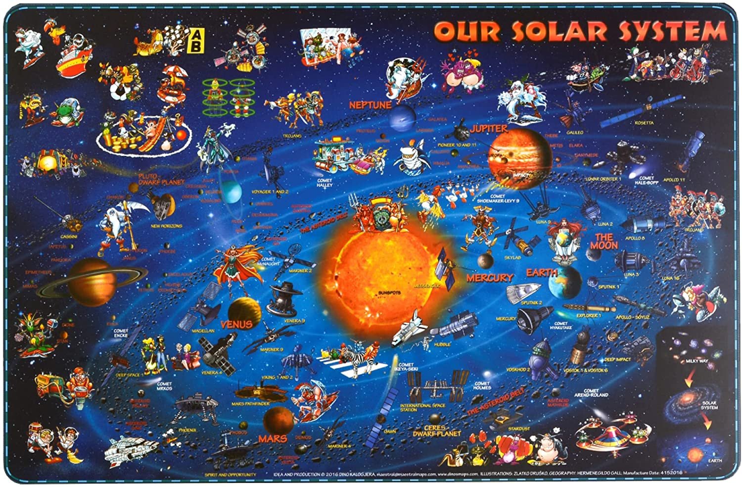? Educational Tool - Teach kids about space, planets and the solar system in an entertaining, fun and easy way. This large, colorful and kid-friendly map of the solar system is both a great learning and reference tool. Add this fun tool to your classroom or homeschool supplies!